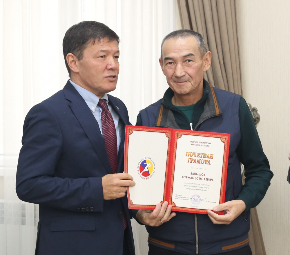 Также слово взял глава комитета по спорту и физкультуре мэрии Бишкека Жоомарт Шамканов, который также поблагодарил Аманкулова за многолетний труд во благо спорта в целом. "Если помните, были такие времена в недалеком прошлом, что было совсем не до спорта. Канат Маратович в числе тех, кто сохранил спортивные федерации. Нельзя не отметить, что именно он сохранил разваливающуюся федерацию и вообще легкую атлетику в стране, а затем развивал последние двадцать лет", - заметил он.
