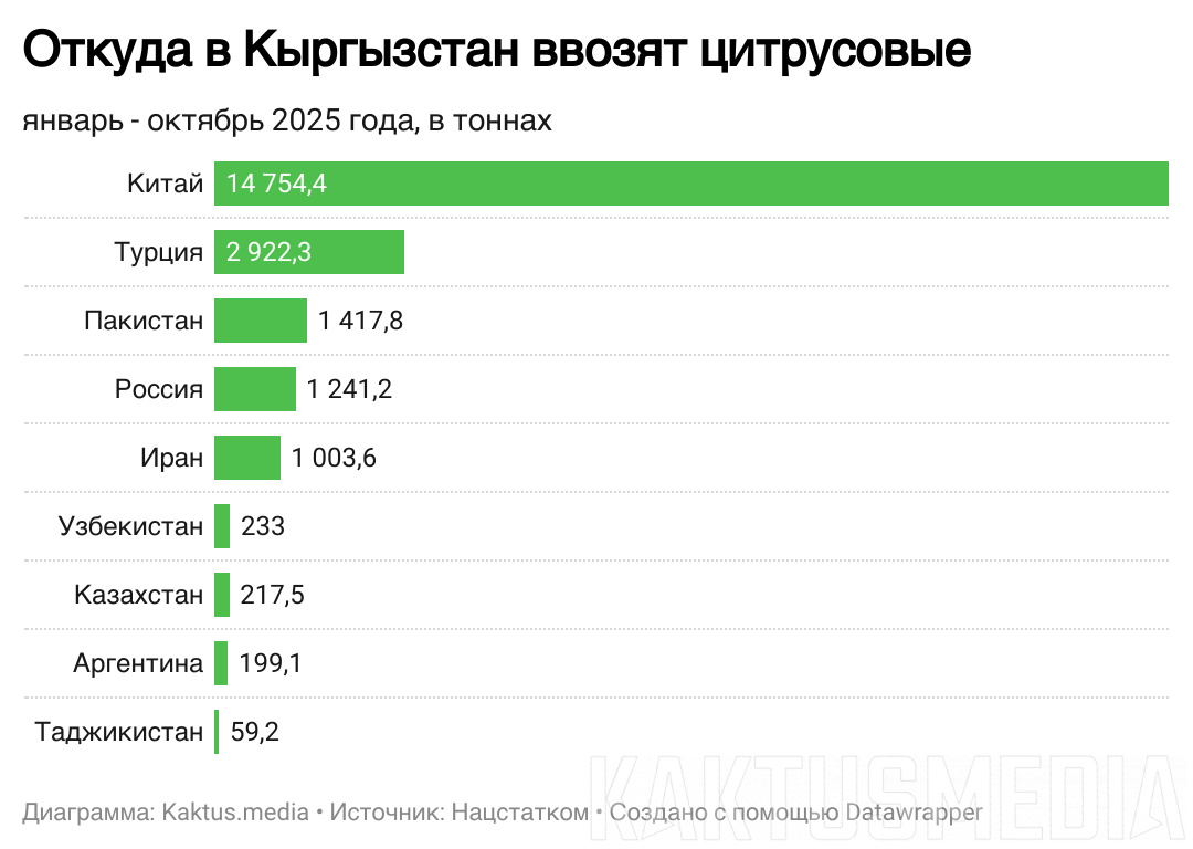 Откуда в Кыргызстан привозят мандарины и другие цитрусовые? Инфографика