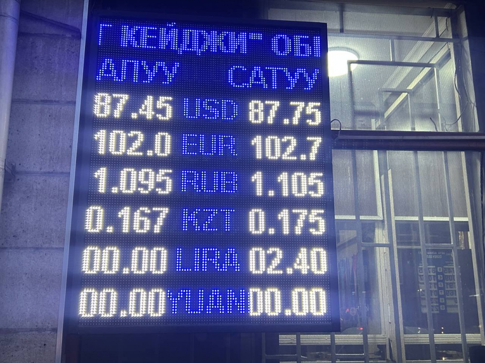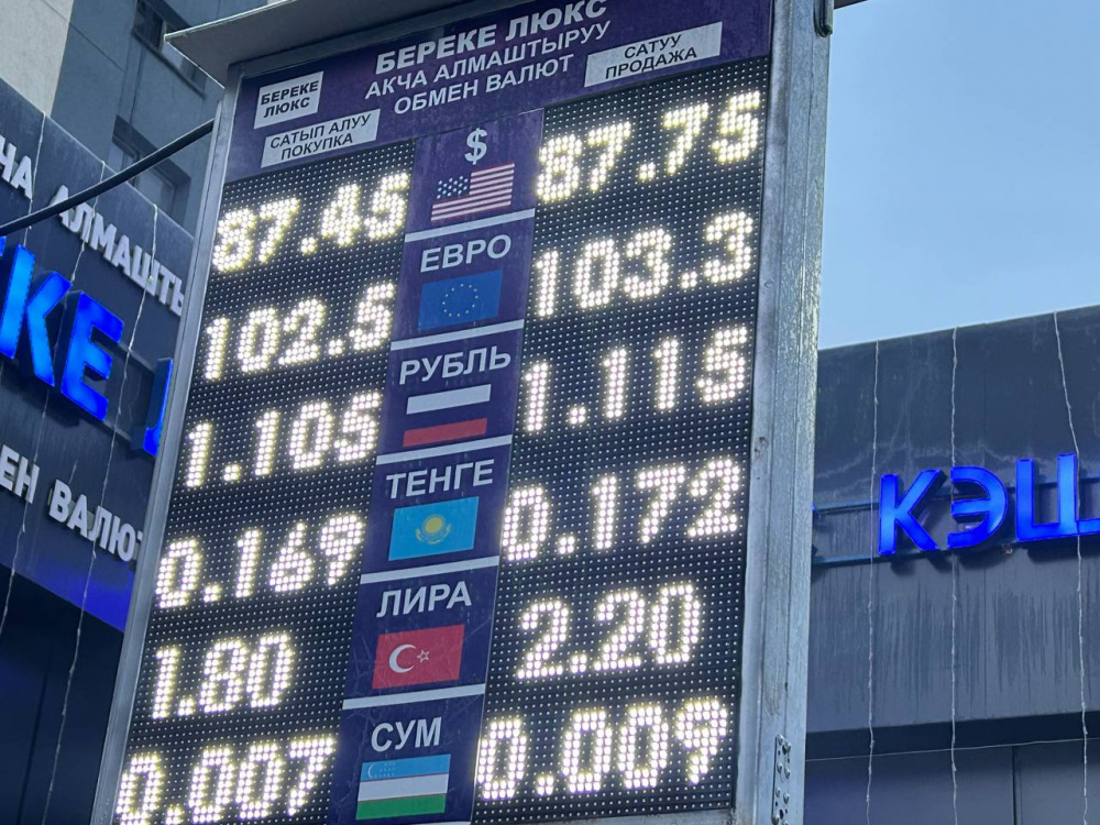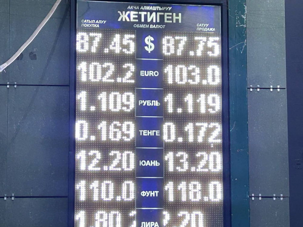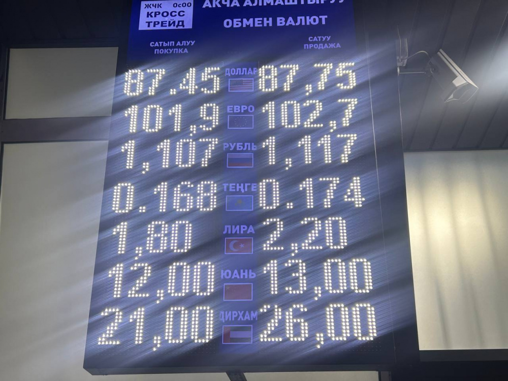 Доллар подешевел. Цена его покупки - 87,45 сома, продажи - 87,75.