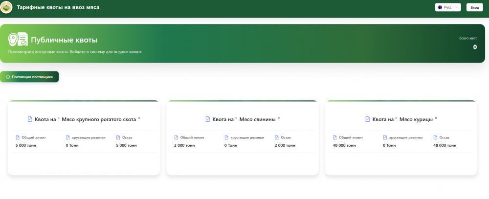 Минводсельпром запускает в опытном режиме автоматизированную систему обработки заявок по тарифным квотам на ввоз отдельных видов мяса