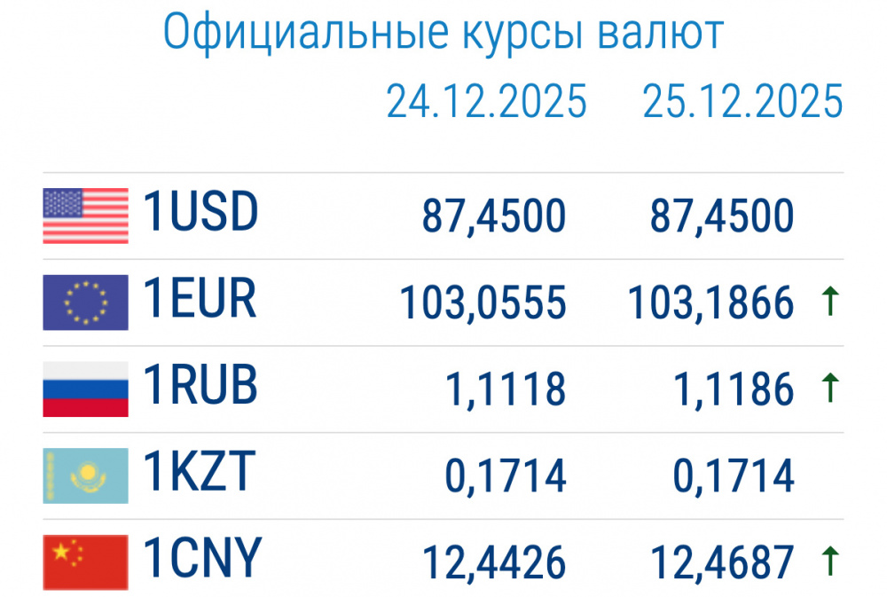 Курс иностранной валюты Нацбанка Кыргызстана на 25 декабря выглядит так: