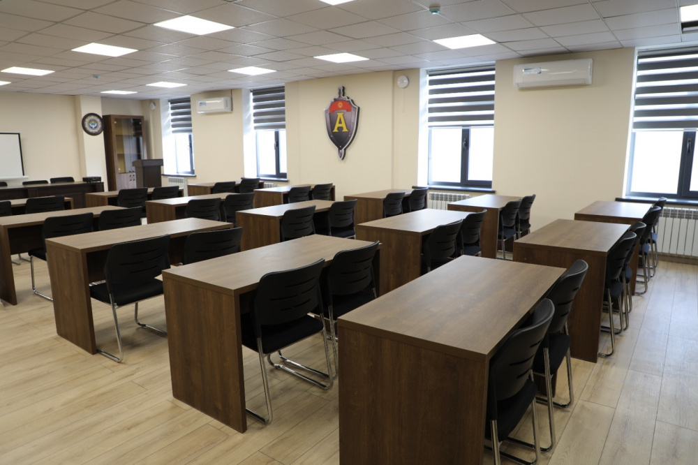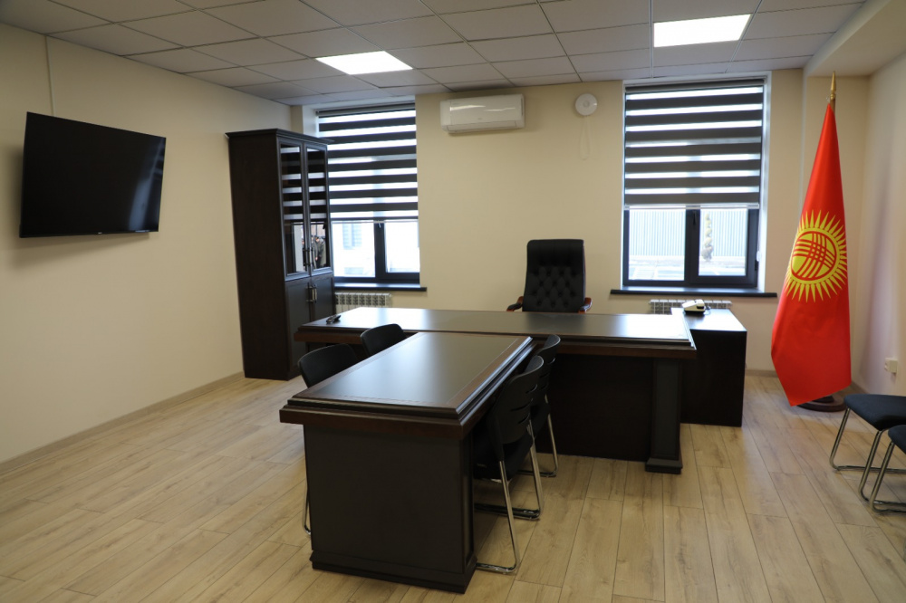 После официальной части глава ГКНБ КР ознакомился с условиями службы и инфраструктурой нового здания.