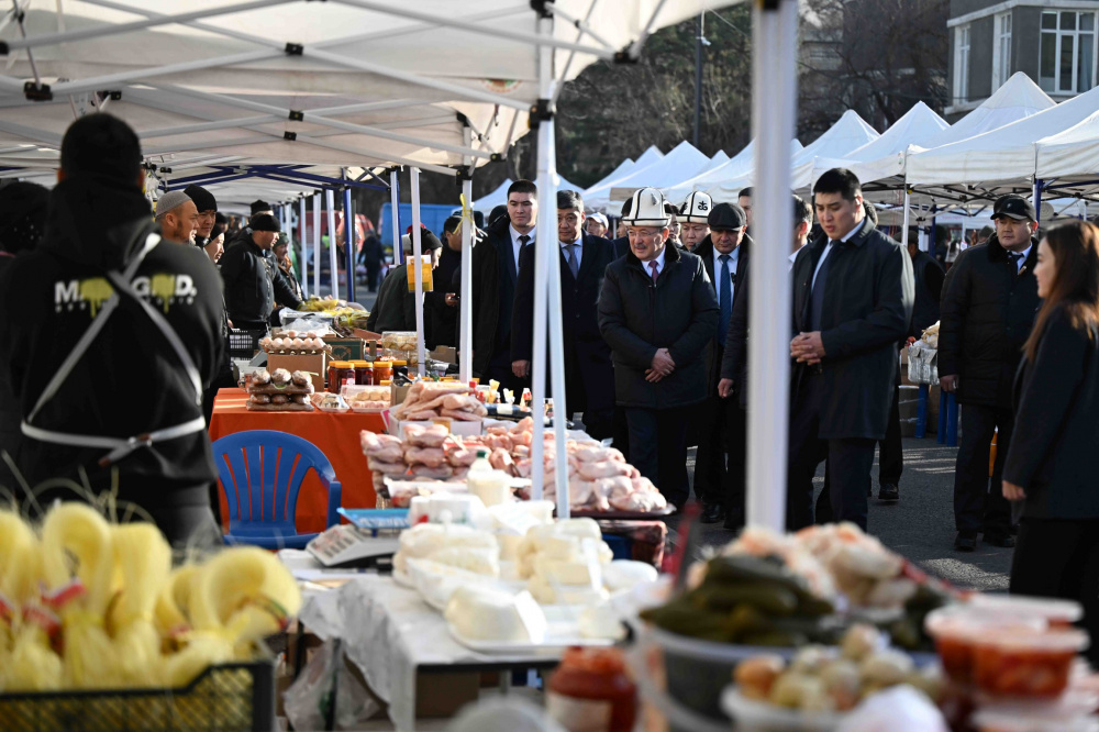 Также все присутствующие на церемонии передачи автомобилей посетили продуктовую ярмарку, которая проводится на площади им. Т. Усубалиева и в микрорайоне "Асанбай" каждые выходные.