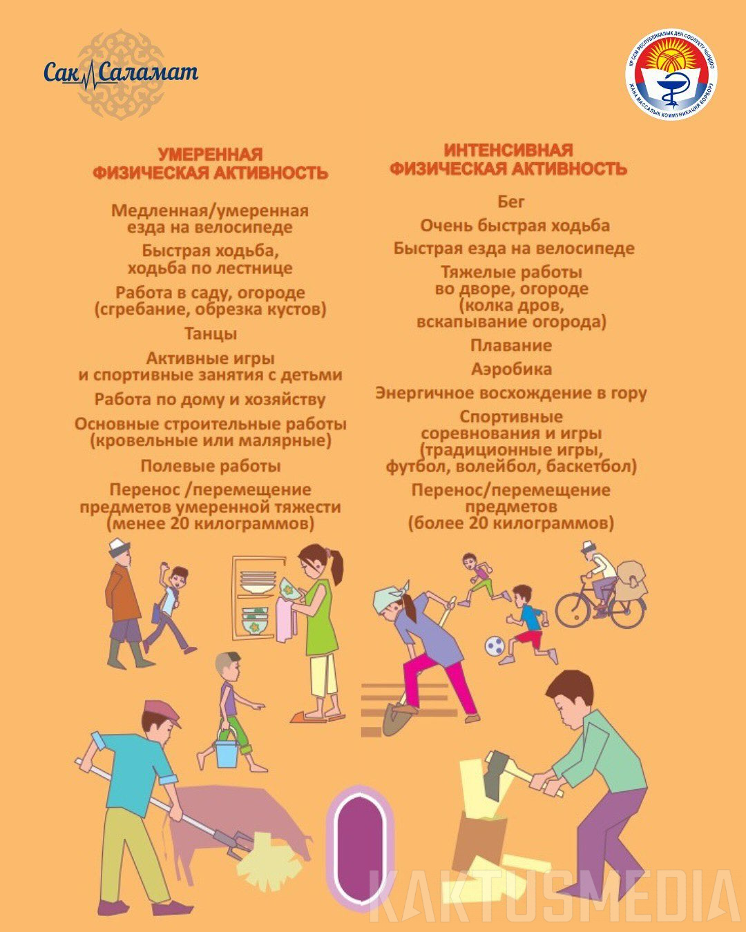 Дети и подростки (6-17 лет) должны заниматься умеренной и интенсивной физической активностью в общей сложности один час в день. Физическая активность продолжительностью более одного часа принесет дополнительную пользу для их здоровья.