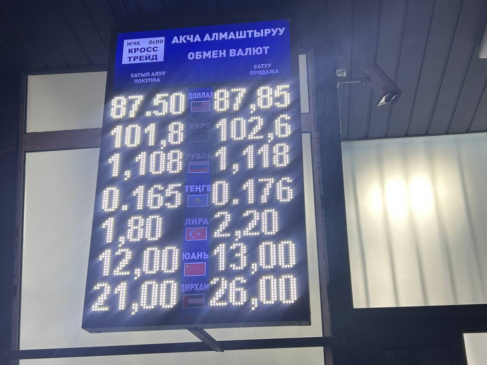 Курс доллара не поменялся: покупка - по 87,5 сома, продажа - по 87,85.