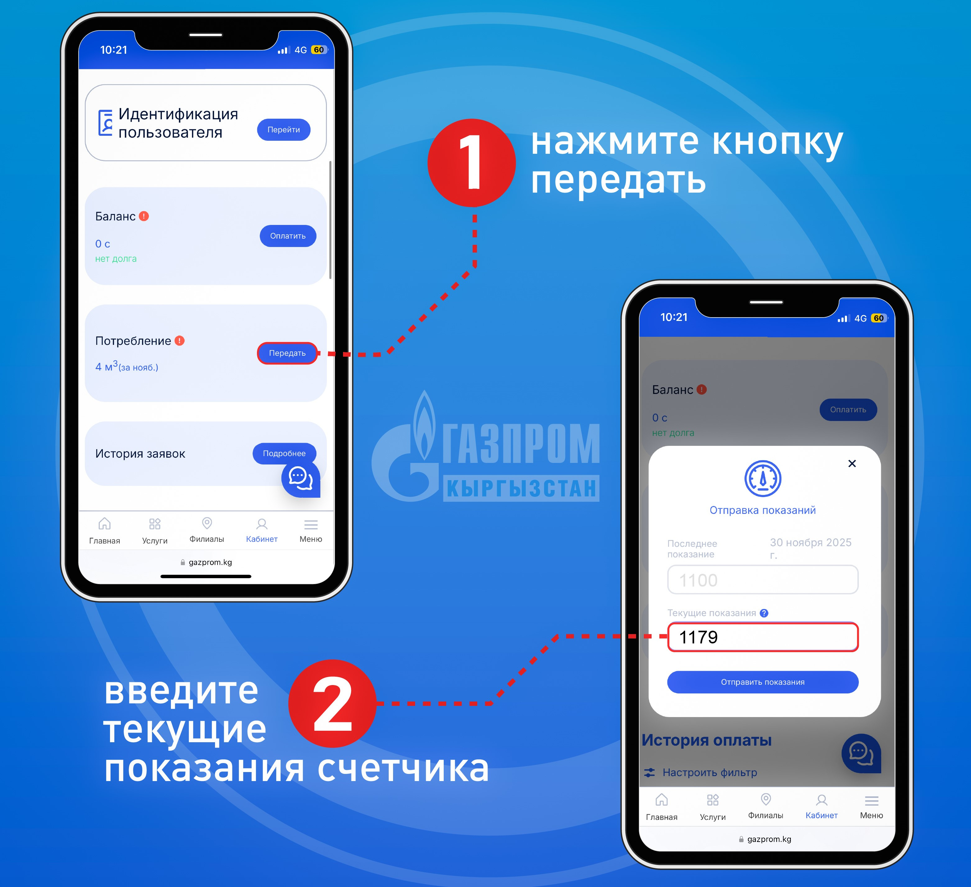 • через мобильное приложение "Газпром Кыргызстан" (App Store, Google Play);