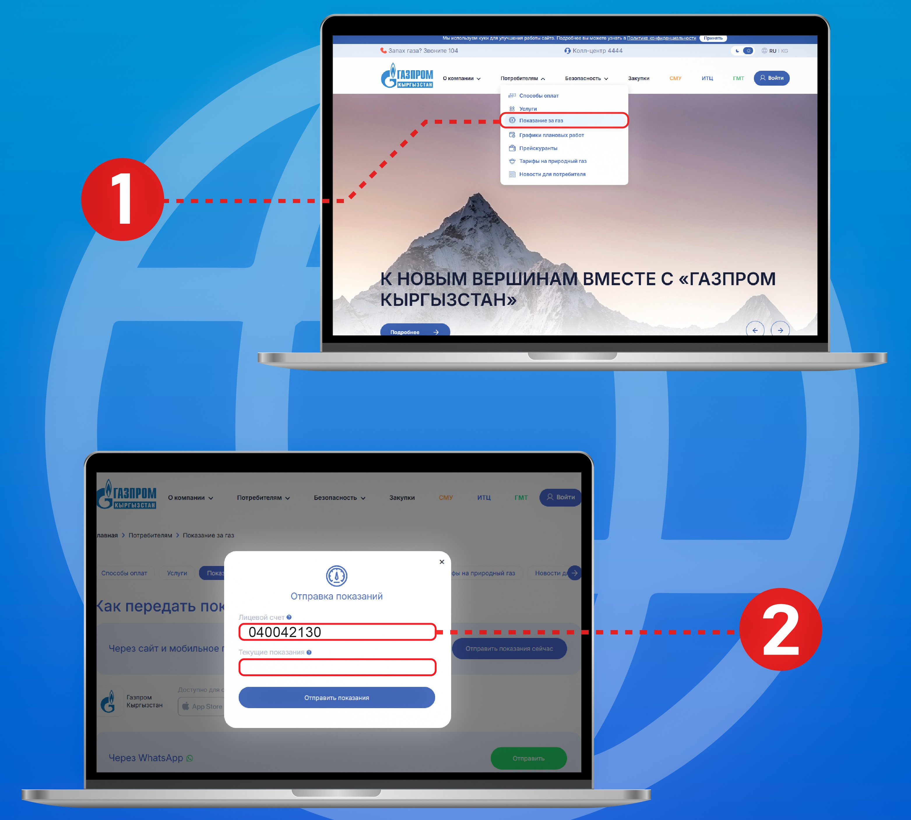 Каждый абонент, в соответствии с правилами поставки и пользования природным газом, обязан ежемесячно передавать показания счетчика газа. Но многие об этом забывают. А некоторые не отправляют их, потому что газом не пользуются. В компании напоминают, что передавать показания нужно, даже если они не меняются. В случае если абонент не живет у себя дома и долго не включает газ, он должен уведомить об этом компанию, оставив соответствующее заявление в личном кабинете на сайте gazprom.kg или через мобильное приложение.