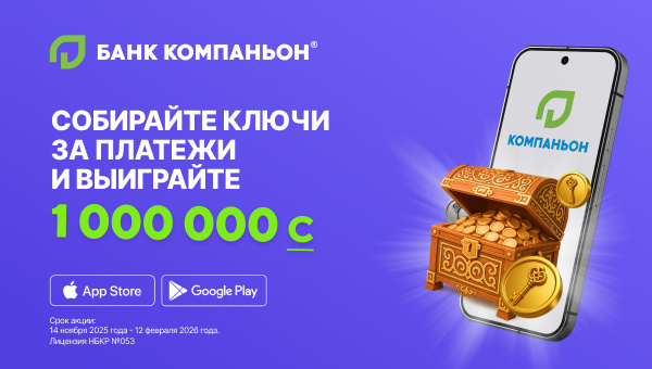 Акция "Ключ к миллиону" не требует сложных условий или специальных заданий. Достаточно пользоваться мобильным приложением "Компаньон" - оплачивать услуги и покупки, совершать переводы, пополнять депозиты и оплачивать более 900 сервисов в приложении.