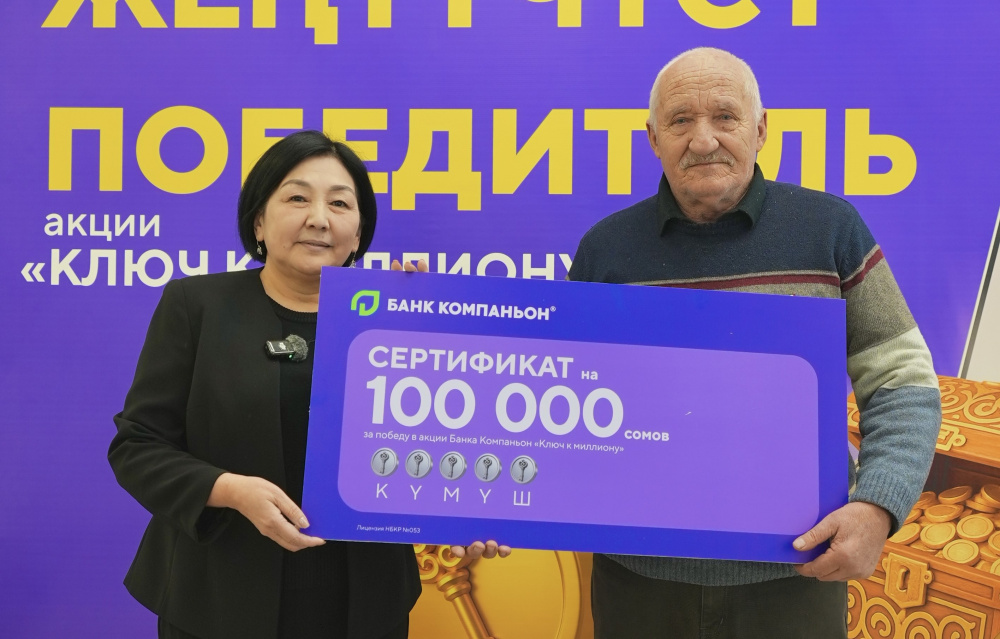 Главный приз акции - 1 000 000 сомов - получили сразу два клиента Банка Компаньон. Золотые сундуки открыли Акылбек уулу Эржан и Музафар Мурзакулов, став обладателями миллионных выигрышей.