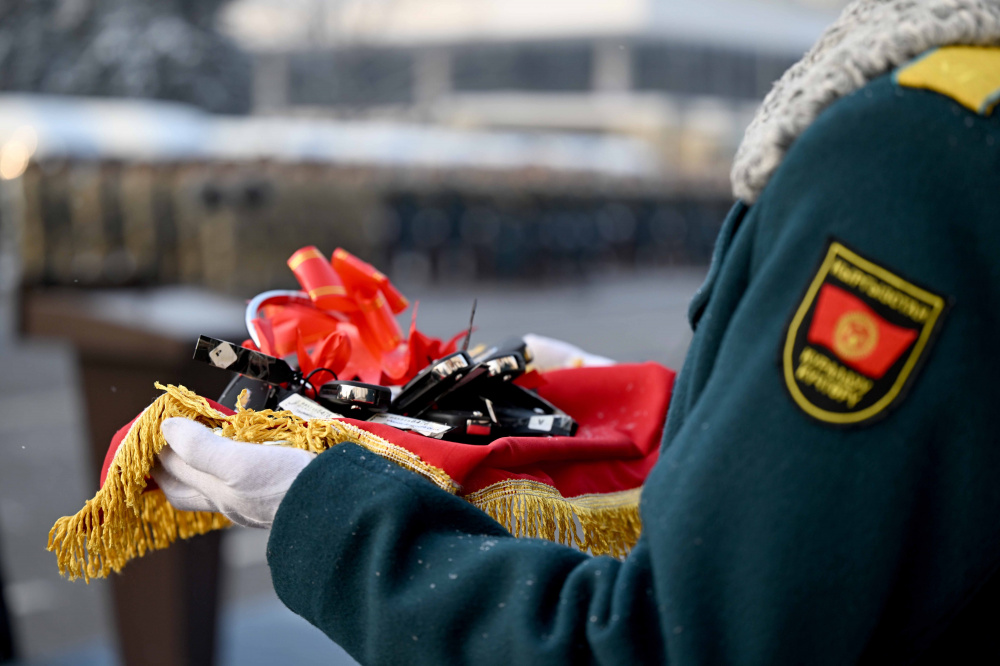 Сегодня, 20 января, Адылбек Касымалиев от имени президента Кыргызской Республики и кабинета министров вручил ключи от автомобилей, купленных для Минобороны.