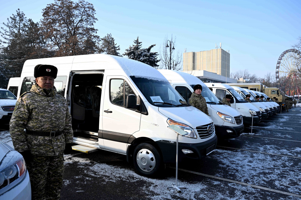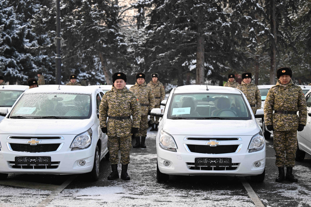 Министерству обороны Кыргызской Республики передано 81 автотранспортное средство. В их числе: 36 автомашин "Шевроле Кобальт", 19 автомобилей JAC T-6, 18 единиц марки "Газель", пять вахтовых автобусов, три микроавтобуса JAC Sunray.