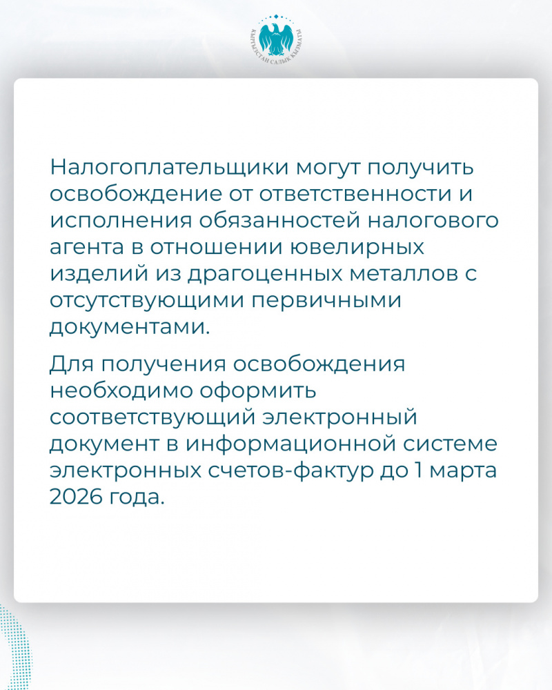 В пресс-службе ГНС рассказали, что для получения освобождения необходимо оформить соответствующий электронный документ в информационной системе электронных счетов-фактур до 1 марта 2026 года.