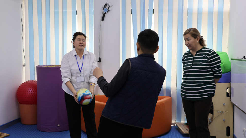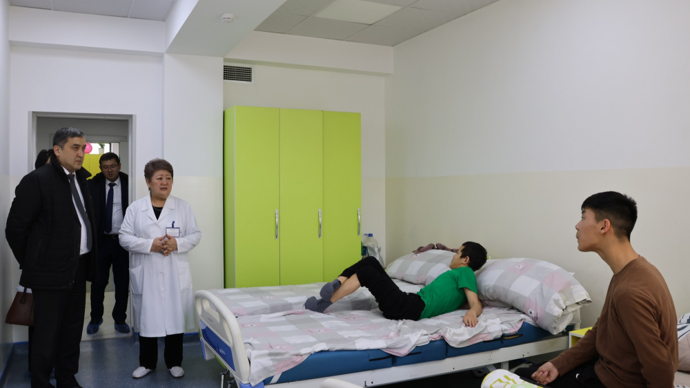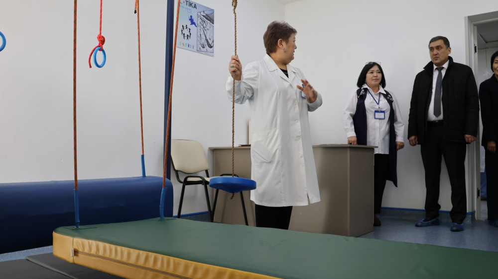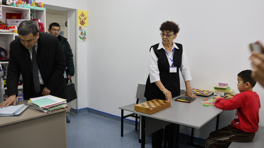 В "Келечеке" министру рассказали о деятельности центра, количестве получателей услуг и составе персонала. По словам директора учреждения, на момент визита услуги получали 45 человек, в том числе 33 ребенка и 28 сопровождающих в стационаре, а также 12 детей, посещающих центр в формате дневного пребывания.