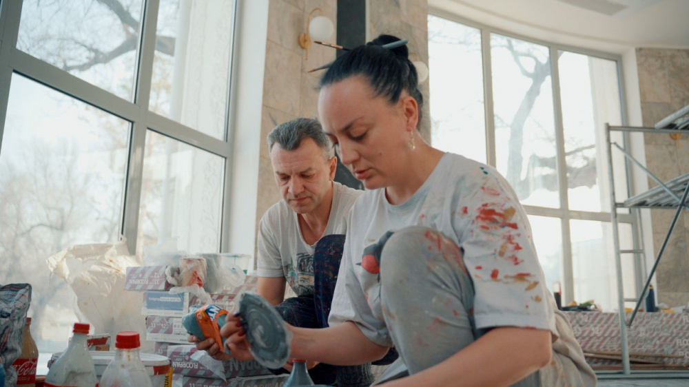 Последний раз само здание павильона реконструировали в 80-е годы, а художественные росписи на стенах и куполе появились позже. Именно эти росписи теперь восстанавливает семейный дуэт художников - Валерий и Алиса Катревичи.