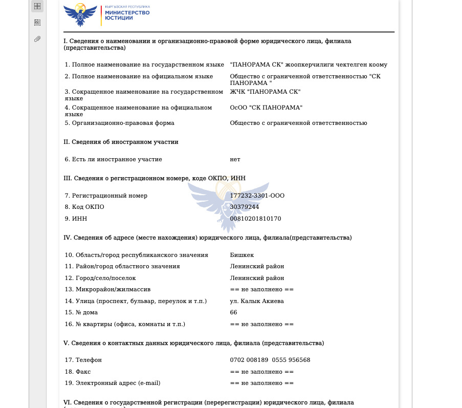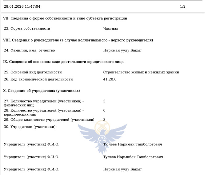 Эта компания оформлена в Бишкеке и в свою очередь, занимается строительством жилых и нежилых помещений.