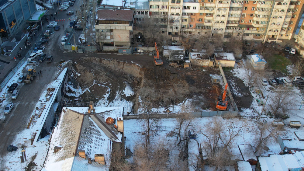 На территории участка по адресу: ул. Шопокова, 121, напротив восточного входа ЦУМа, вырыли котлован. В этом районе идет реализация проекта Old Bishkek. И дополнительная застройка вызвала вопросы бишкекчан.
