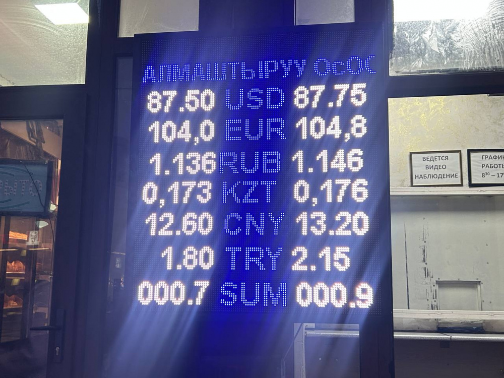 Курс доллара не поменялся: покупка - по 87,5 сома, продажа - по 87,75.