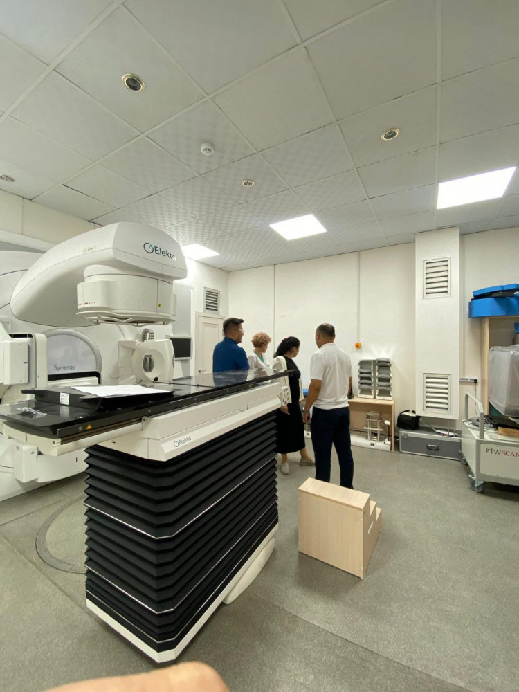 Линейные ускорители имеются только в Национальном центре онкологии, в регионах такие аппараты отсутствуют. В связи с этим пациенты из всех областей вынуждены приезжать в Бишкек для получения лучевой терапии.