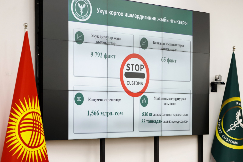 В сфере правоохранительной деятельности в 2025 году выявлено 9 тыс. 792 факта правонарушений и преступлений в области таможенного законодательства. Общий объем дополнительных поступлений в бюджет превысил 1 млрд 566 млн сомов, что почти в два раза больше показателя предыдущего года.