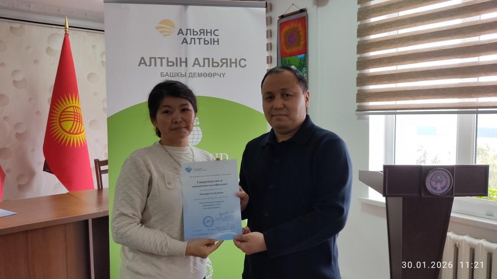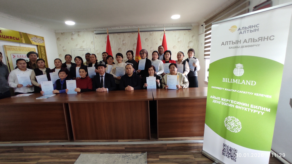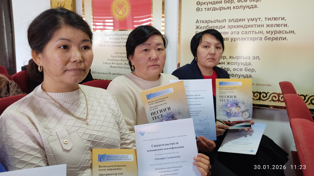 Организацию обучения в январе 2026 года осуществило общественное объединение "Билимленд". 120 учителей из средних школ Айтматовского, Таласского, Бакай-Атинского, Манасского районов и города Таласа углубили свои знания по подготовке к ОРТ и получили подтверждающие сертификаты.