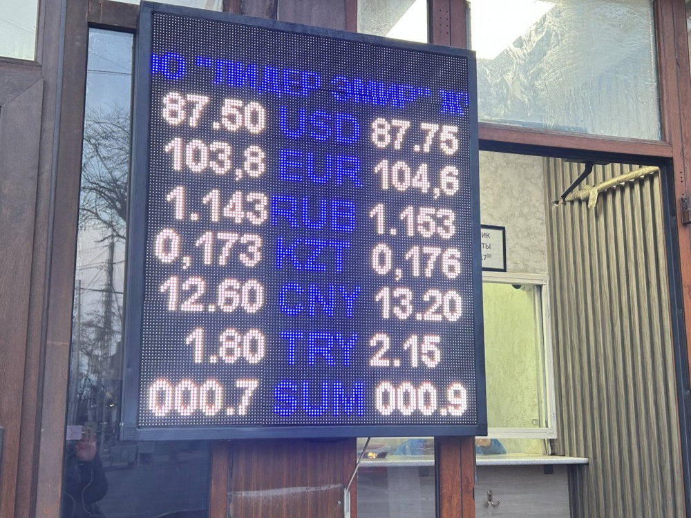 Курс доллара не поменялся: покупка - по 87,5 сома, продажа - по 87,75.