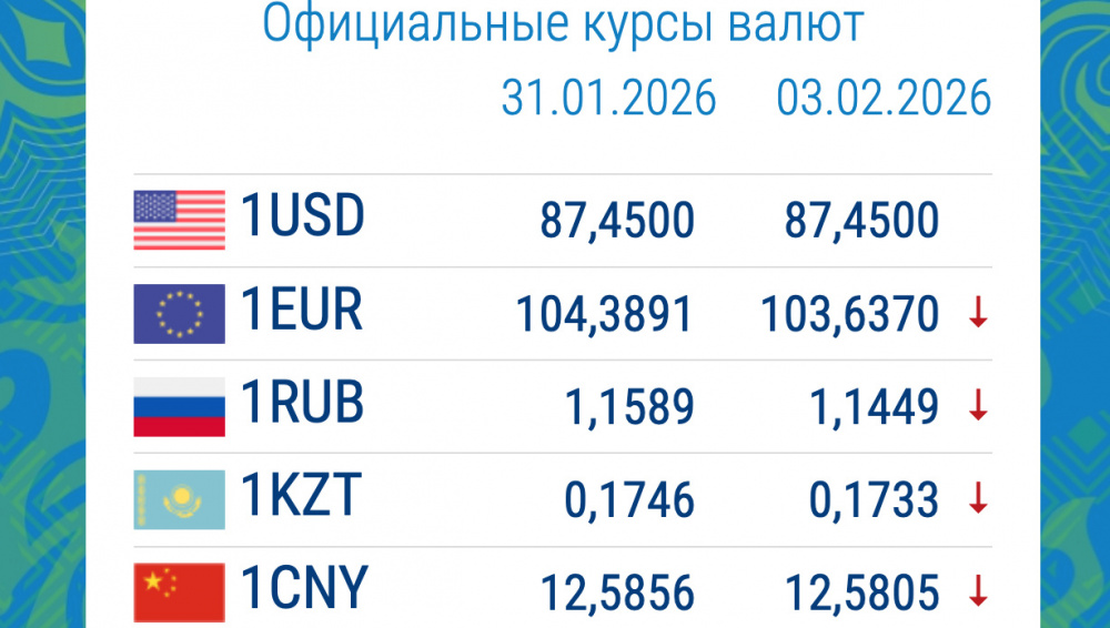 Курс иностранной валюты Нацбанка Кыргызстана на 3 февраля выглядит так:
