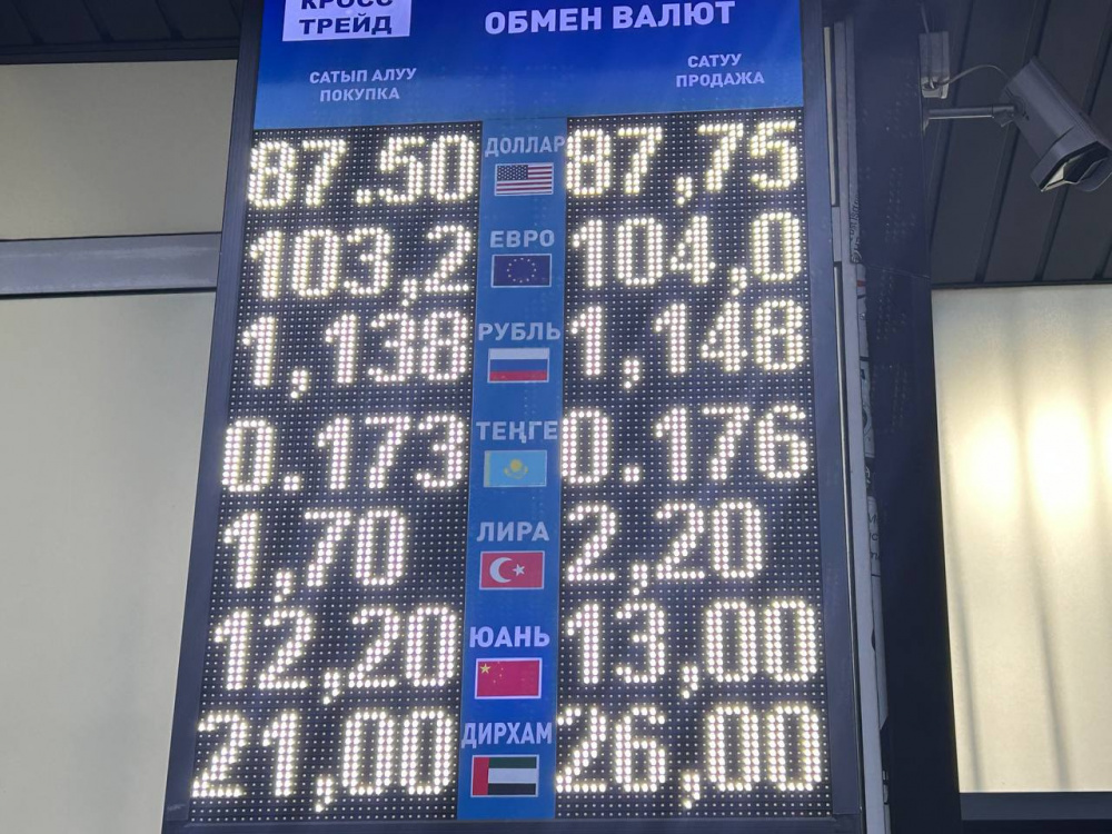 Курс доллара не поменялся: покупка - по 87,5 сома, продажа - по 87,75.
