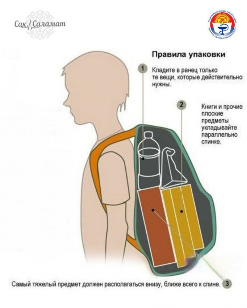 Кушубакова подчеркнула: родители должны уделять внимание и выбору рюкзака. "У нас часто покупают рюкзак "на вырост", чтобы хватило на несколько лет. Это недопустимо. Рюкзак должен подбираться строго по росту и весу ребенка. Учебники в рюкзаке должны располагаться так, чтобы плотно прилегать к спине, а не перекладываться бутылками, пеналами и другими предметами. Лямки должны быть отрегулированы так, чтобы не сдавливать шею, а нижний край рюкзака находился на уровне талии, а не ниже", - предупредила специалист.