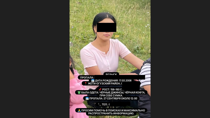 17-летняя Айсулуу М. пропала 27 сентября в Джети-Огузском районе Иссык-Кульской области. В тот день она направлялась из села Барскоон к подруге в село Жениш, однако домой не вернулась. Вечером того же дня родственники забили тревогу и начали искать девушку. Они обратились в милицию, информация была размещена в различных пабликах.