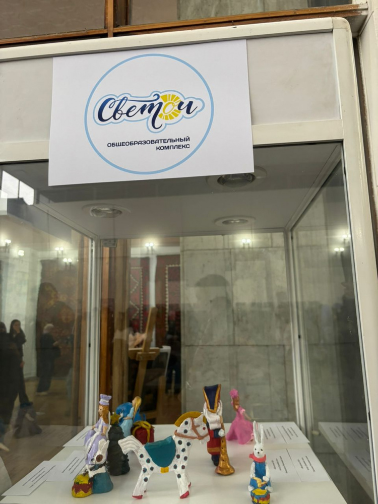 Одним из ярких акцентов выставки стала экспозиция работ 15 учеников студии керамики при школе "Светоч плюс". Работы представлены под руководством профессиональных дизайнеров и керамистов Алексея Мензелинцева и Карины Касымовой, которые возглавляют студию и последовательно развивают керамику как современное художественное и образовательное направление. В студии занимаются дети в возрасте от 5 до 12 лет.