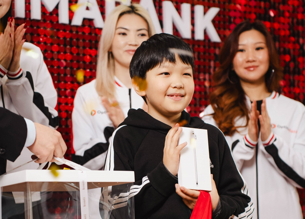 В рамках акции "20 чемпионов" подарки получают и дети. Юный держатель карты Visa Optima Gold для ребенка - Актан М. - выиграл iPhone 17 Air.