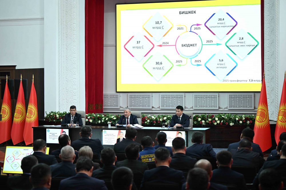 По словам Касымалиева, бюджет Бишкека в 2021 году составлял 10,7 млрд сомов, в 2024 году фактические доходы составили 37 млрд сомов, а в 2025 году - 30,6 млрд сомов.