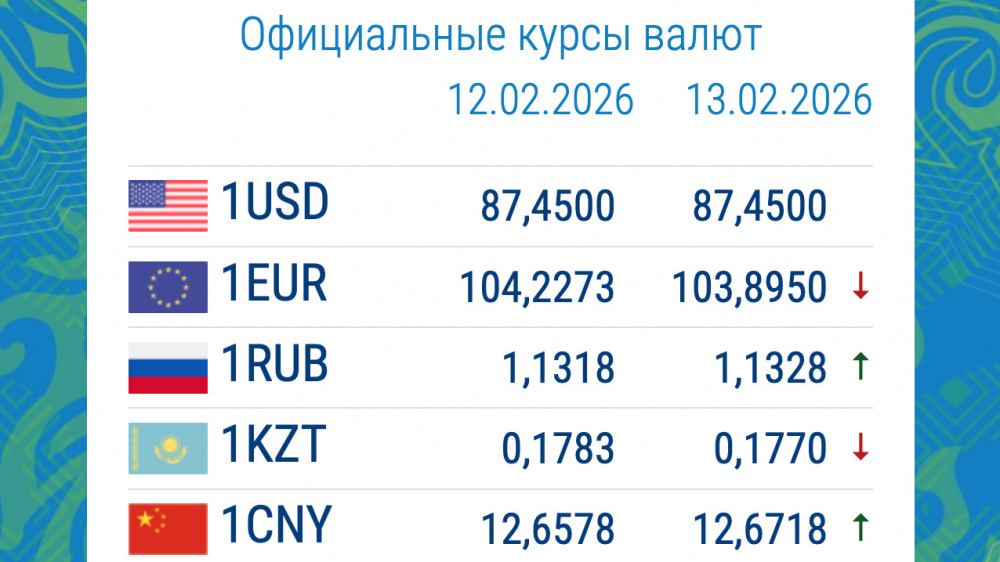 Курс иностранной валюты Нацбанка Кыргызстана на 13 февраля такой: