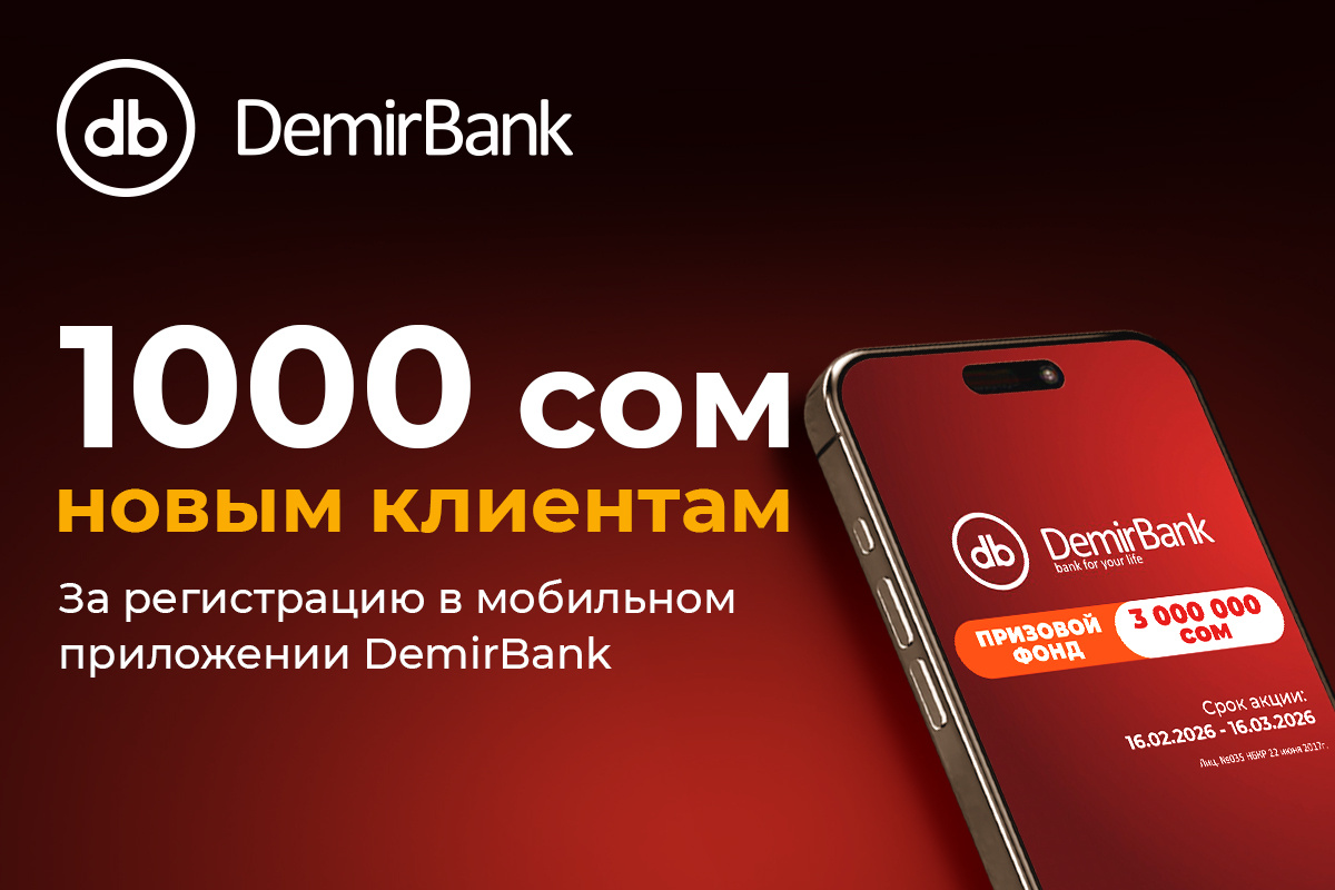 С 16 февраля по 16 марта 2026 года DemirBank проводит акцию, направленную на новых клиентов банка. Участник, выполнивший условия, получает 1 000 сомов на свой счет.