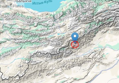 Очаг землетрясения располагался на территории Китая, в 34 км к югу от села Бедель, в 140 км к югу от Каракола.
