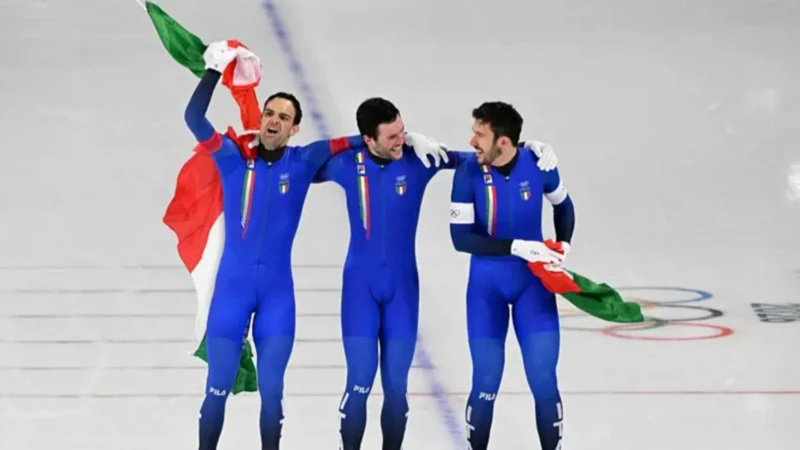 Хозяева Игр из Италии завоевали девятое золото благодаря победе в мужской командной гонке преследования в конькобежном спорте, опередив США, которые после серебра довели общий медальный показатель до 20 наград.