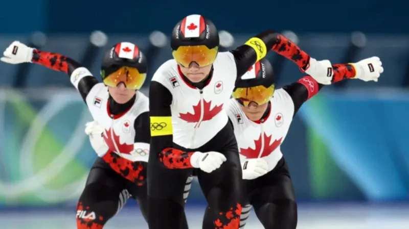 Олимпийские чемпионки из Канады одержали победу в финале женской командной гонки преследования. Ивани Блондин, Валери Мальте и Изабель Вайдеманн отставали на первых этапах, но идеально рассчитали время своего рывка и повторили свой успех в Пекине в 2022 году.