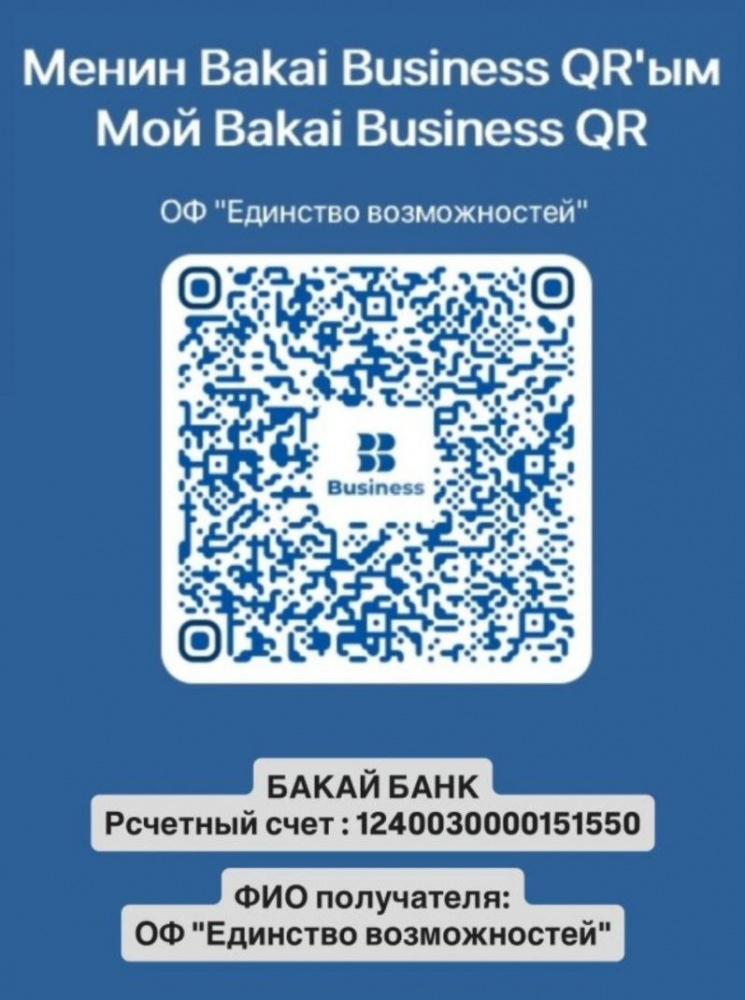 Bakai Bank: 1240030000151550, ОФ "Единство возможностей";