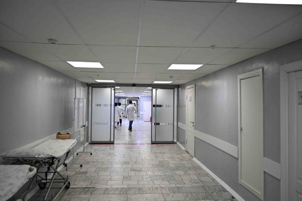 Отмечается, что работы находятся на завершающей стадии. В здании демонтированы внутренние конструкции, установлены окна, заменены системы отопления, санитарно-технические системы и электроснабжение. Завершены отделочные, вентиляционные и фасадные работы, построено помещение газификаторной, проложены кислородные трубопроводы, установлены ламинарные потолки и рециркуляционные колонны.