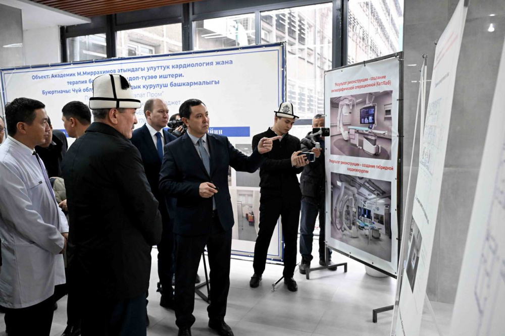 Председатель кабмина Адылбек Касымалиев проинспектировал ход капитального ремонта Национального центра кардиологии и терапии имени М. Миррахимова, а также восстановительные работы в Научно-исследовательском институте хирургии сердца и трансплантации органов.