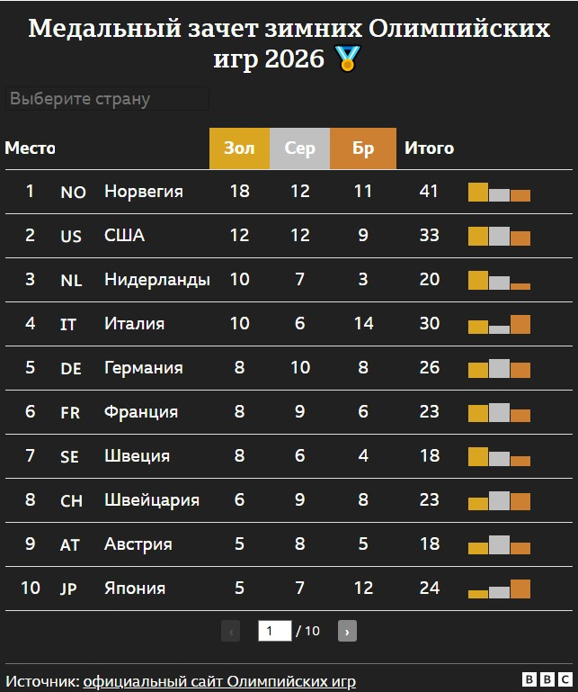 Медальный зачет: Норвегия - на вершине