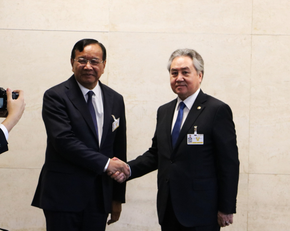 23 февраля 2026 года в Женеве на полях сегментов высокого уровня Совета ООН по правам человека и конференции по разоружению министр иностранных дел Кыргызской Республики Жээнбек Кулубаев встретился с заместителем премьер-министра, министром иностранных дел и международного сотрудничества Камбоджи Прак Сокхоном.