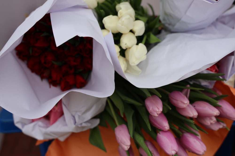 Все желающие могут тут купить цветы оптом или в розницу. Стоимость цветка тюльпана начинается от 75 сомов и выше.