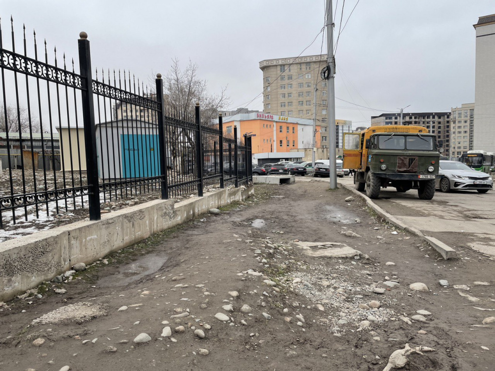 Учебный центр для незрячих граждан расположен в здании АУЦА по адресу: ул. Токомбаева, 7/1. Этот район хоть и считается престижным, благоустроенным не назовешь. От магистрали есть дорога, ведущая к зданиям на второй линии. Эта дорога в ужасном состоянии.