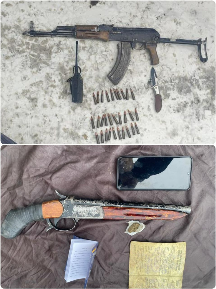 Кроме того, изъяты автомат АКСУ с магазином (30 патронов), пистолет Макарова (ПМ), 20 боевых патронов калибра 9 мм к ПМ, травматический пистолет, боевая ручная граната Ф-1, ножи, а также наркотики.