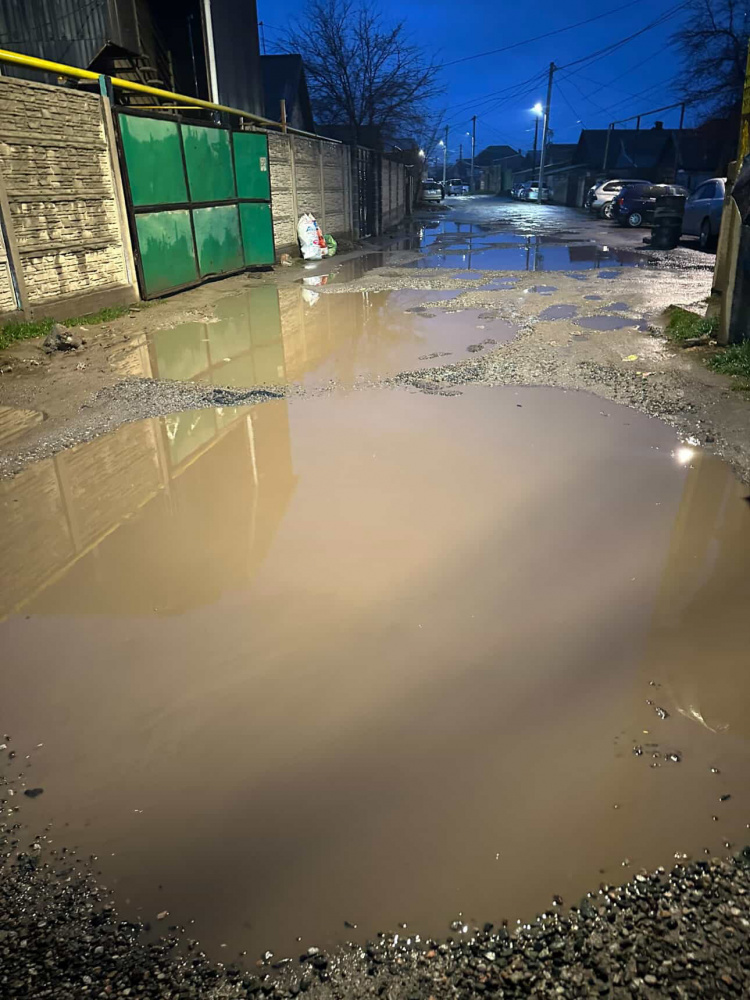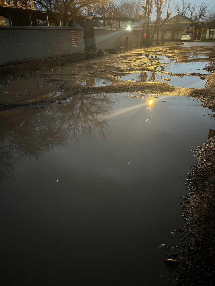 По словам одного из читателей, улицу, расположенную между улицами Патриса Лумумбы и Кайназаровой, никогда не ремонтировали. После дождей на дороге образуются большие лужи, а некоторые участки, как отмечают жители, больше напоминают грязный пруд.