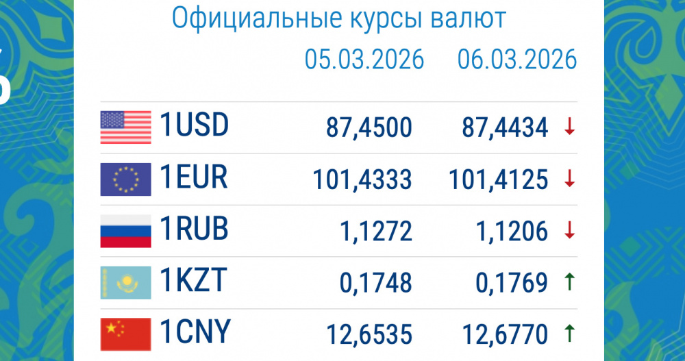 Курс иностранной валюты Нацбанка Кыргызстана на 6 марта выглядит следующим образом:
