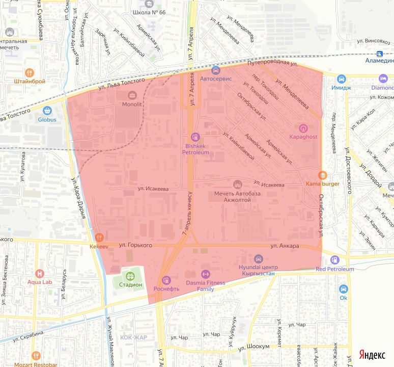 - Район отключения: ул. Октябрьская – ВБЧК – р. Аламедин – ул. Путепроводная.