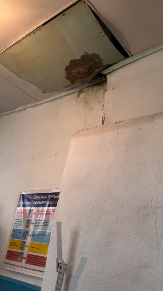 В ФАП села Октябрьского, по ее данным, после дождя капает вода с потолка, здание непригодно для оказания медпомощи населению: нет элементарных условий для осмотра беременных, новорожденных и детей до пяти лет, которым делается профилактическая прививка.