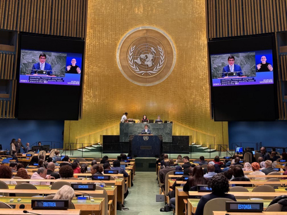 Глава делегации Кыргызстана также отметил, что сама Организация Объединенных Наций должна подавать пример в вопросах равенства.